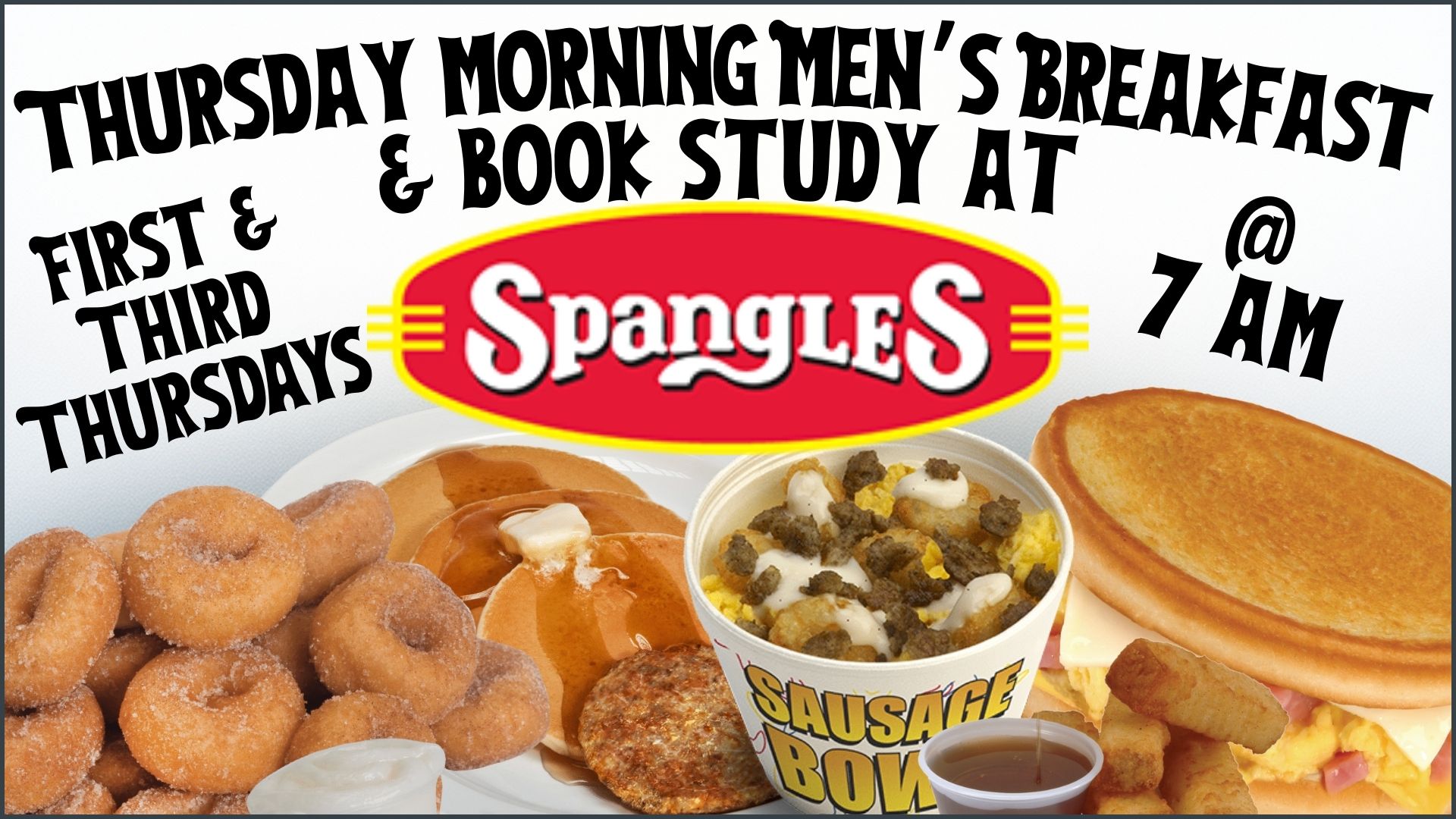 Join the men of Woodlawn for breakfast, fellowship, Bible study at Spangles every first and third Thursday at Spangles in Derby!